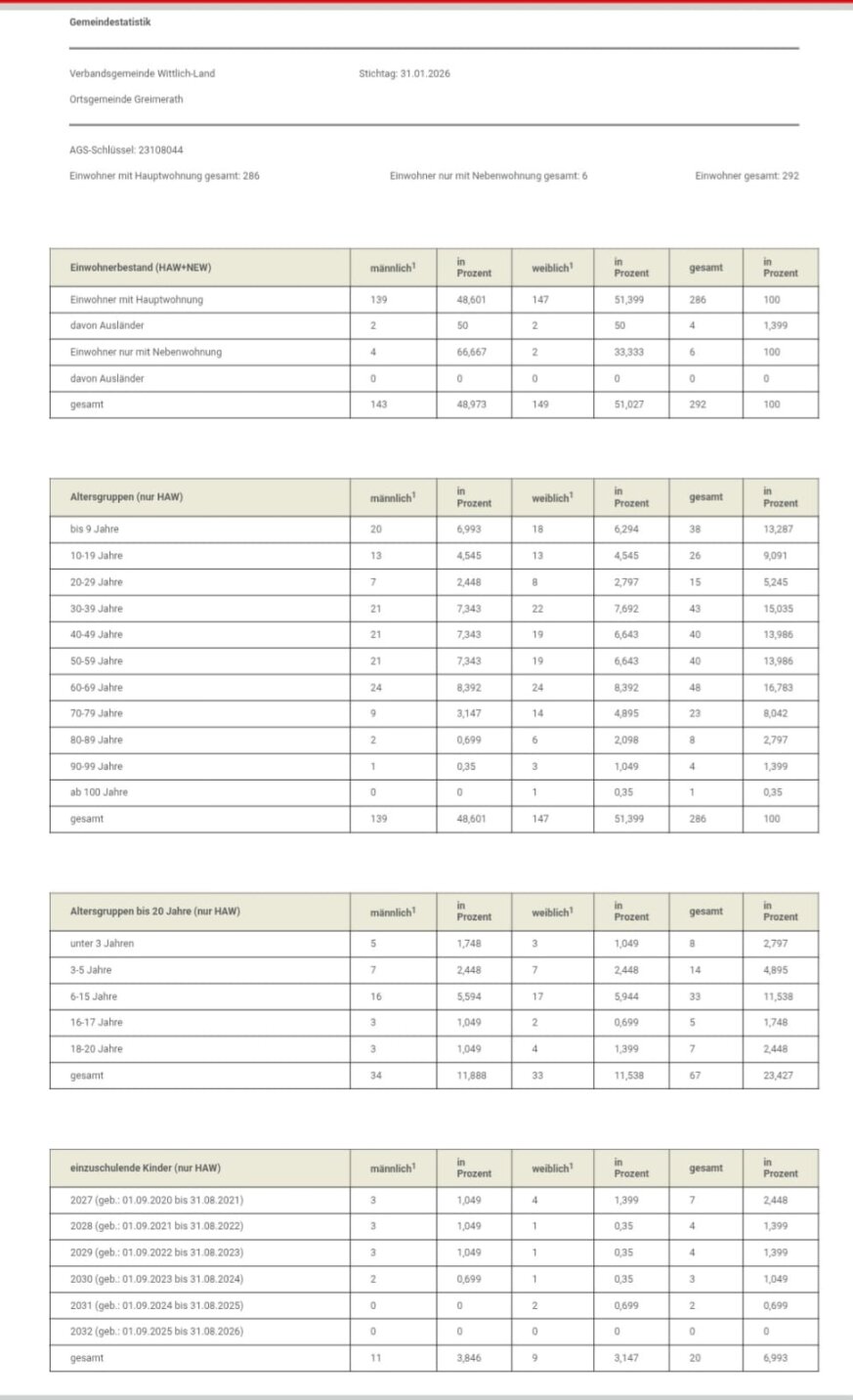 Der WhatsApp Kanal ersetzt nicht die offiziellen Informationen der Gemeinde Greimerath. Diese Infos werden weiterhin über die Wochenzeitung „Mein Wittlich Land“ veröffentlicht.